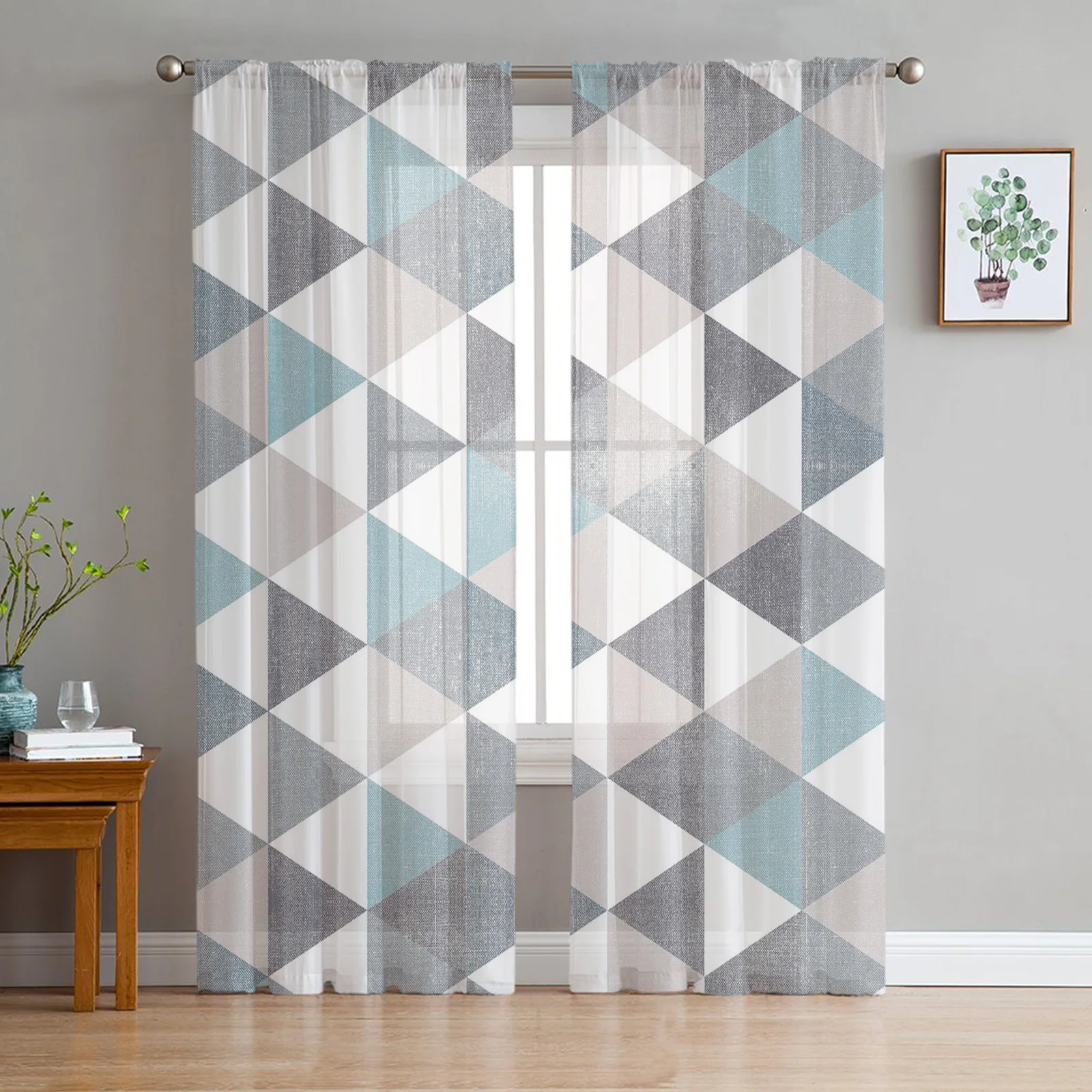 Ромбовидная клетчатая текстура ретро геометрическая Тюлевая занавеска вуаль прозрачная тюль для спальни гостиной кухни прозрачные оконны...