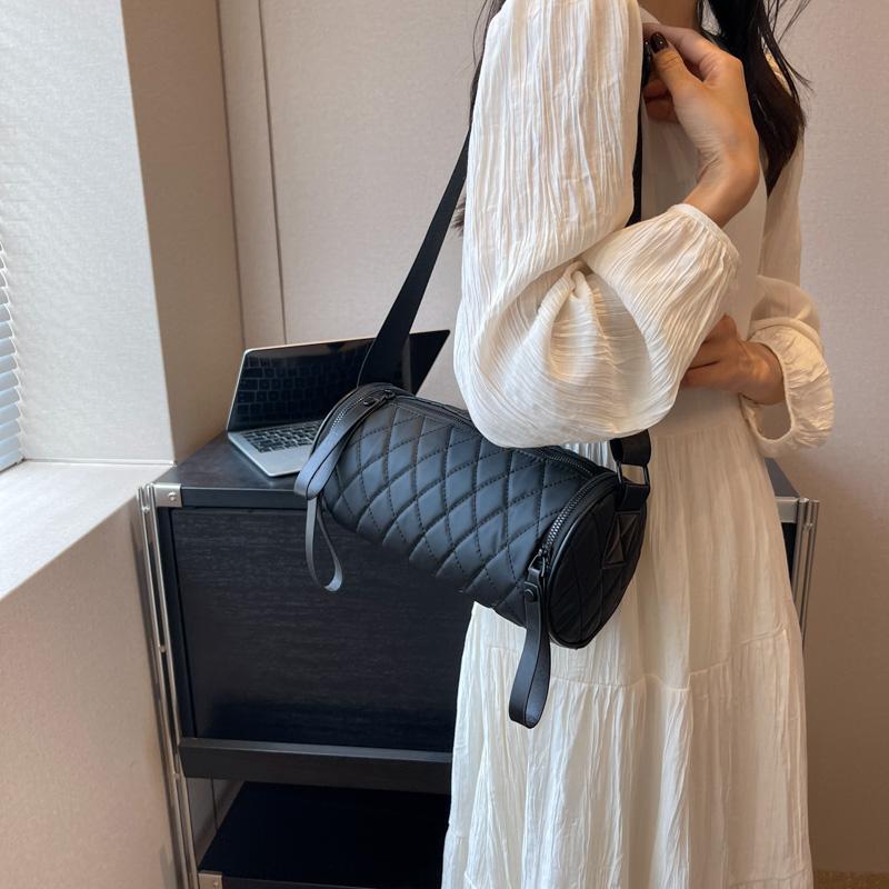 Ромбовидная цилиндрическая сумка через плечо Женская сумка большой вместимости Сумка через плечо чёрный