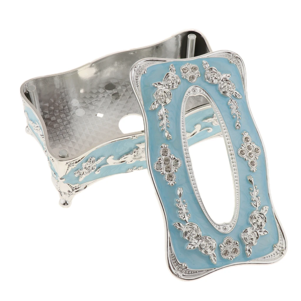Роскошная Европейская винтажная Серебристая синяя акриловая коробка для салфеток из сплава для дома отеля автомобиля держатель для салфет...