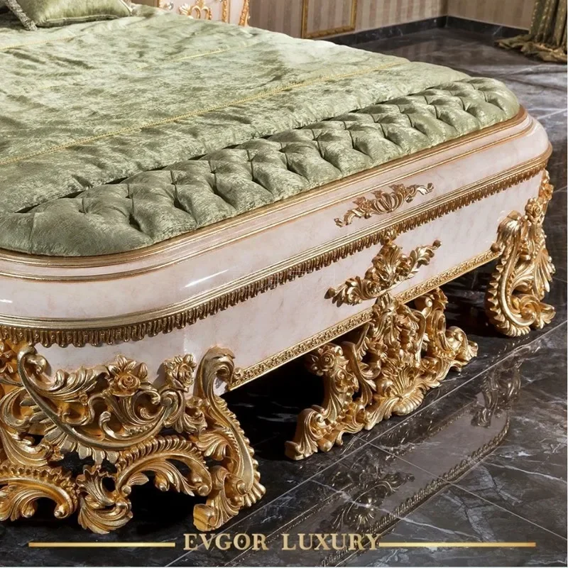 Роскошная Европейская кровать из цельной древесины на заказ, двойная французская резная мебель для спальни хозяйской принцессы