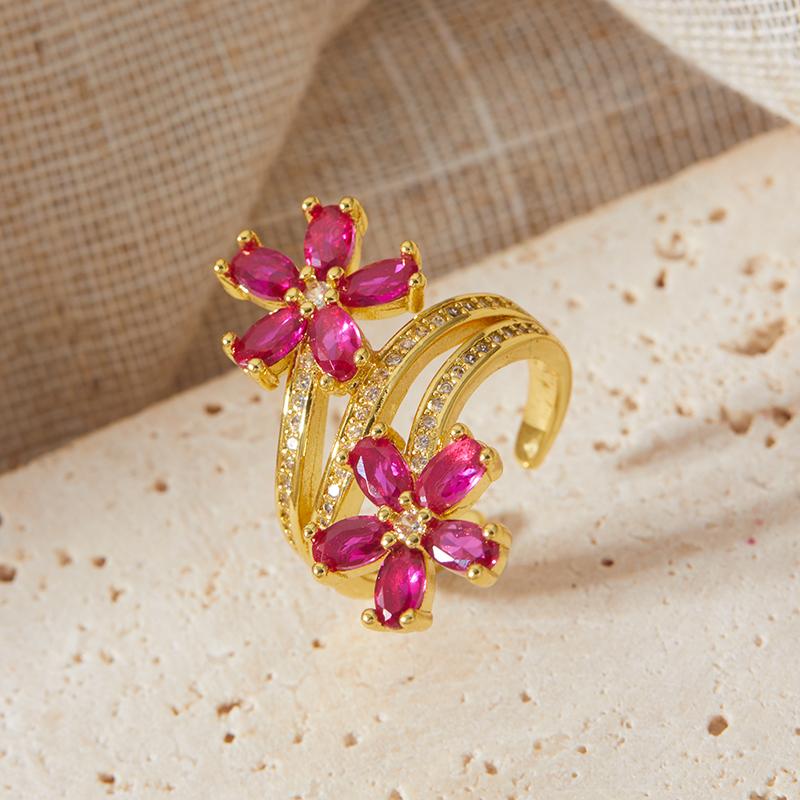 Роскошная Мода Нежные Красные Цветочные Кольца для Женщин Тренд Темперамент Креативное Открывающееся Регулируемое Кольцо Вечеринка День Рождения Циркон resizable