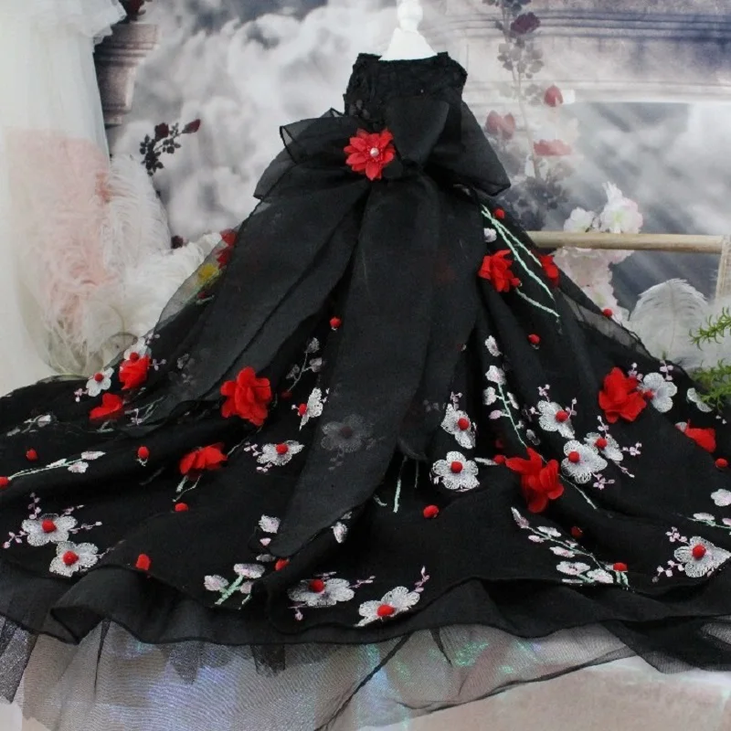 Роскошная Одежда для собак ручной работы, задняя часть, 3D вышивка розы, секретные черные украшения, цельное платье для королевского дворца