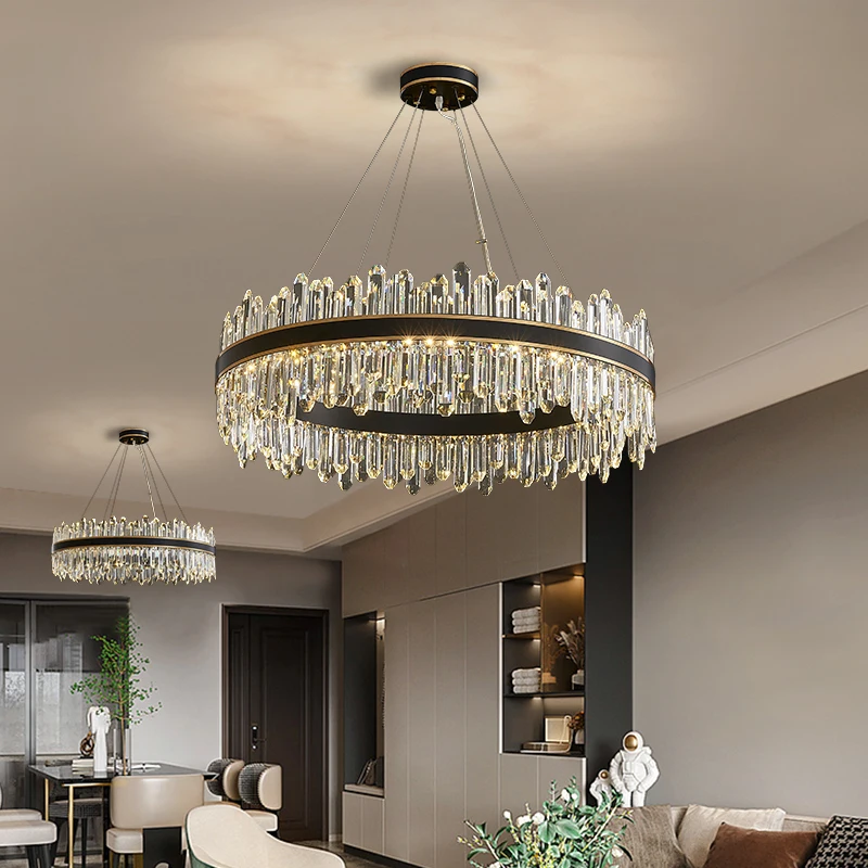 Роскошная Современная хрустальная люстра для гостиной, круглая/Овальная светодиодная хрустальная лампа, Новые Черные Декоративные лампы для дома