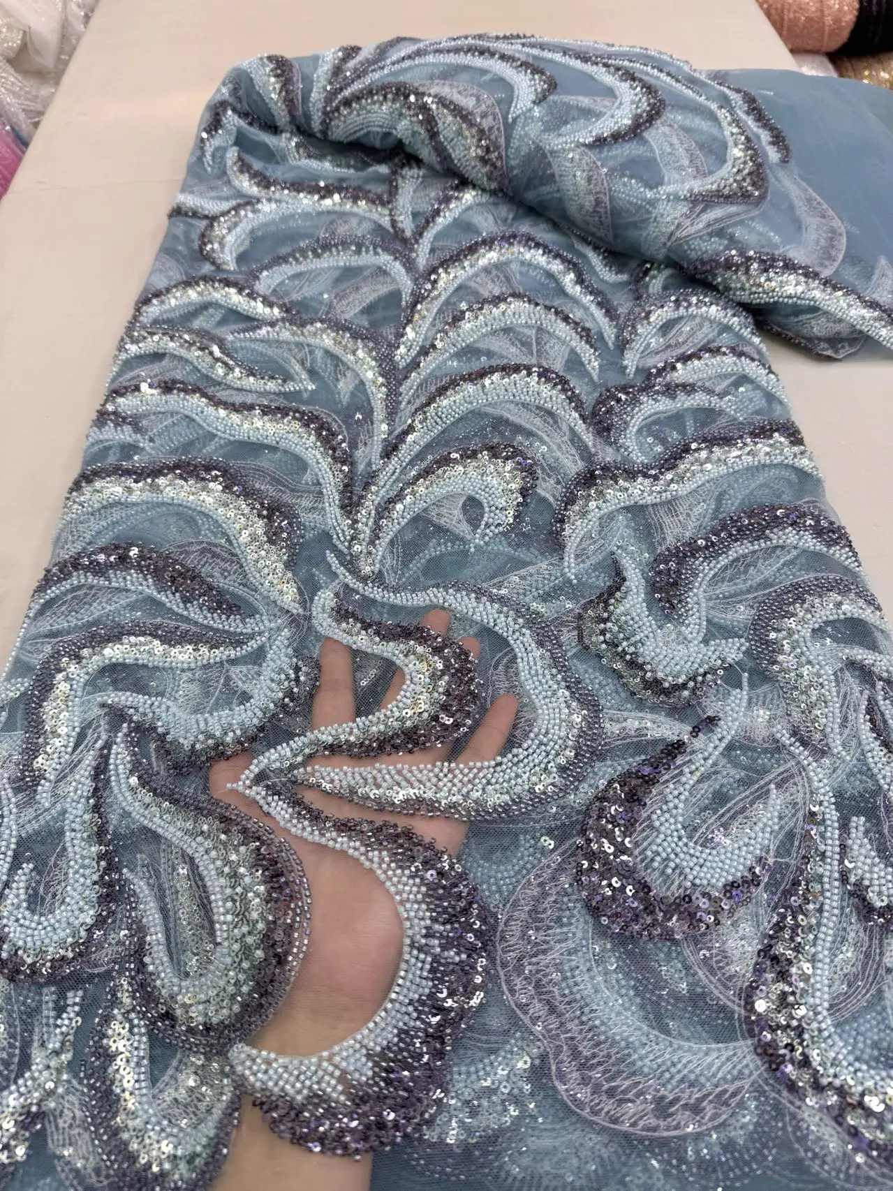 Роскошная африканская сетчатая кружевная ткань с блестками, для шитья, одежды, бисера, тюля, свадебных платьев, вышивки, ткани по метрам, 5 ярдов
