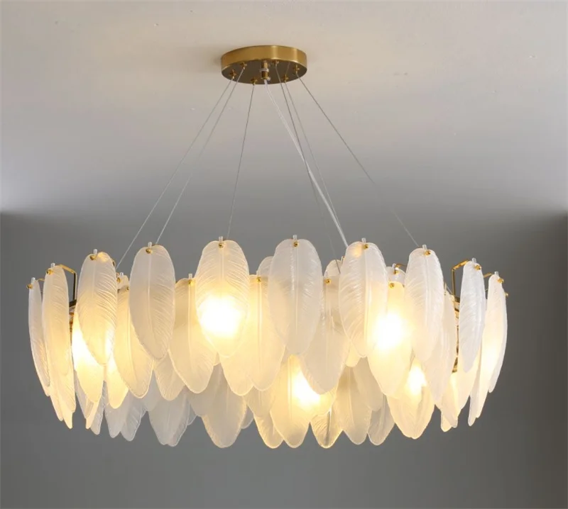 Роскошная большая люстра для гостиной, лампа с белыми перьями, стеклянная Современная Минималистичная атмосфера, лампа для столовой, спаль...