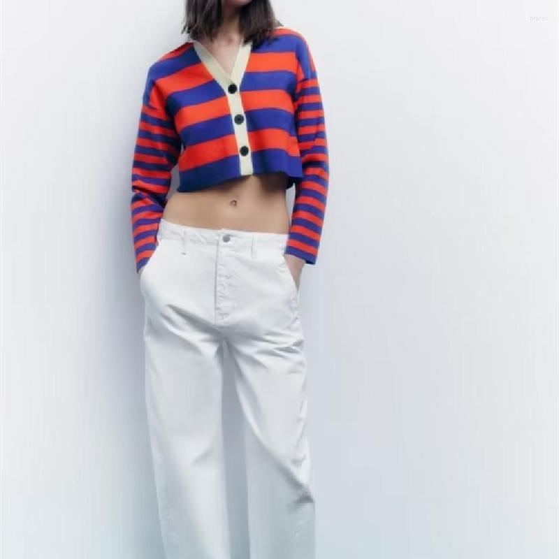 Women' Knits COS LRIS 2023 Spring Temperament Women' Sweet Short POLO Shirt Collar Striped Knitted Cardigan Jacket 8689006, Multi