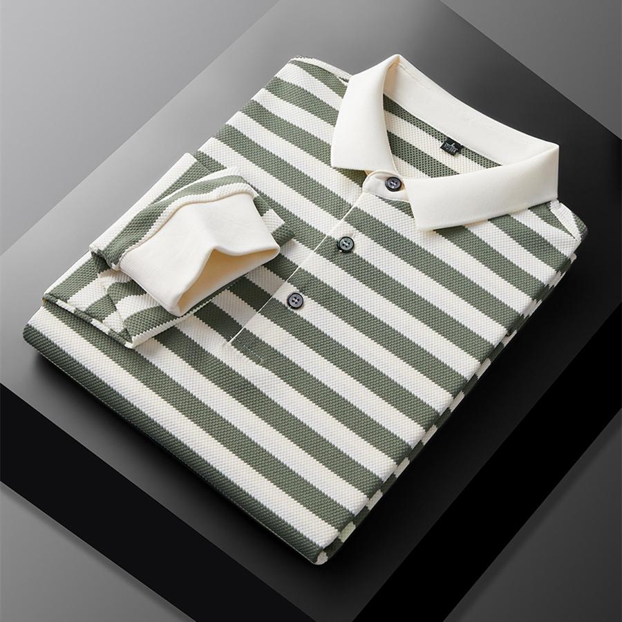 Роскошная высококачественная рубашка-поло с длинным рукавом мужская весна-осень новая модная полосатая футболка повседневная корейская версия молодежная с лацканами L зелёный