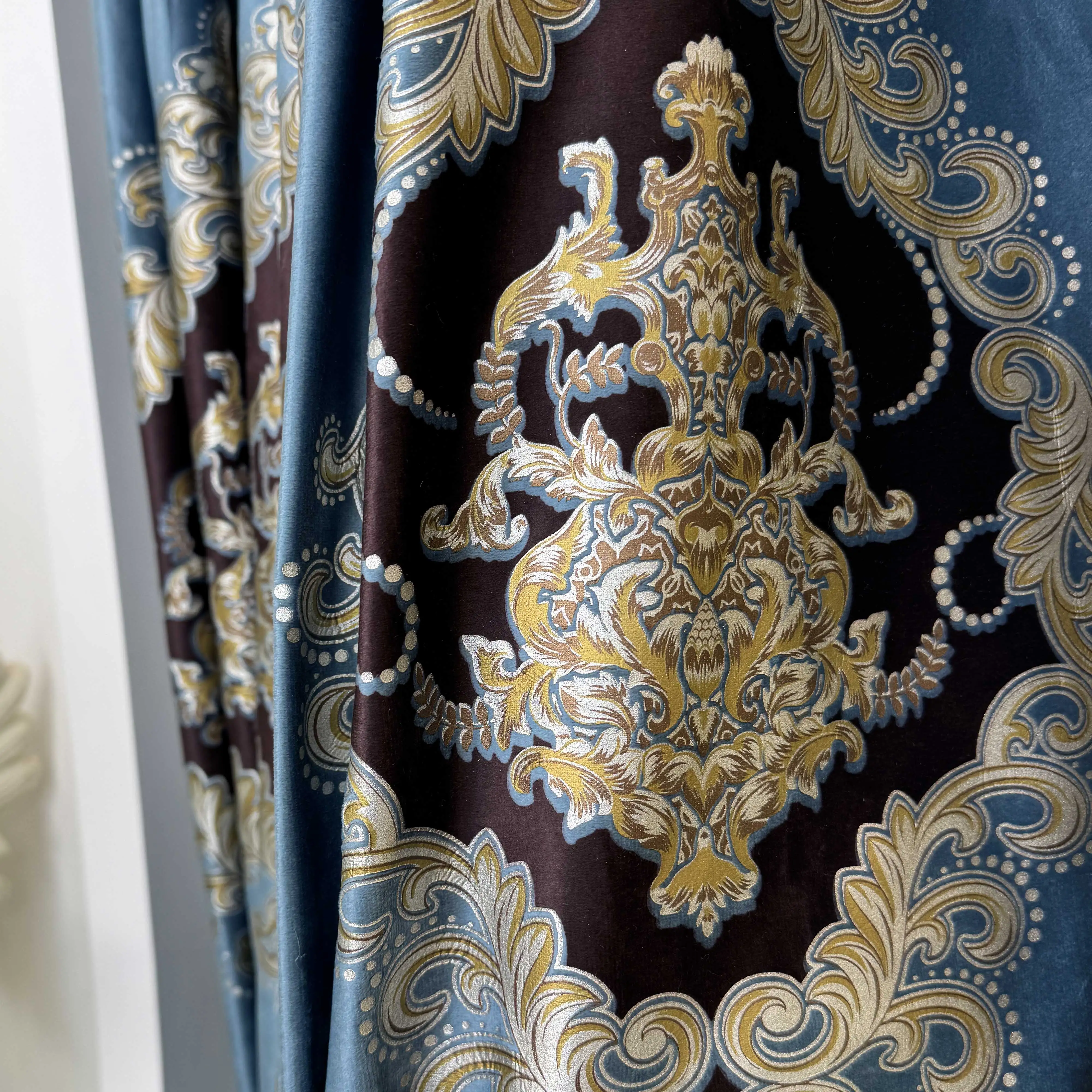 Роскошная европейская толстая бархатная оконная комната в стиле ретро, сине-желтая кружевная ткань с вышивкой, затемняющая занавеска, тюль, драпировка M1792