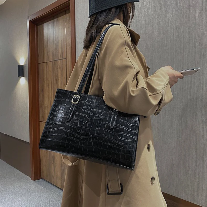 Роскошная женская сумка, модная простая элегантная Ретро сумка из искусственной кожи, однотонная женская большая сумка-тоут через плечо с к...