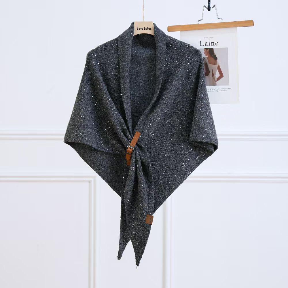 Роскошная женская треугольная шаль из шерстяной смеси с пайетками - Коллекция Осень/Зима Above 175cm