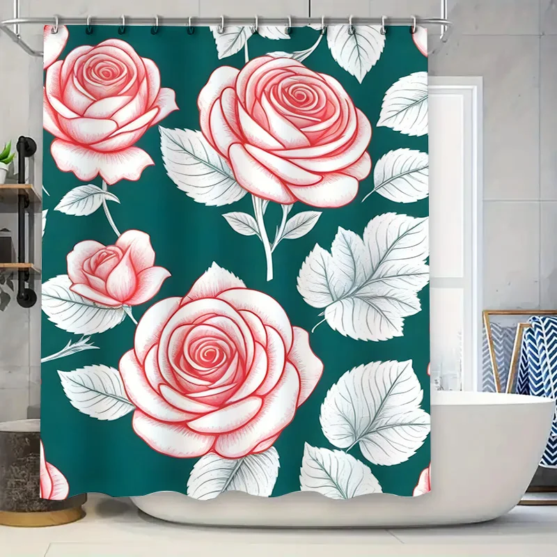 Роскошная занавеска для душа с цветочным принтом, водонепроницаемый декор для ванной комнаты для украшения дома, узор розы в бело-розовом цвете на зеленом фоне