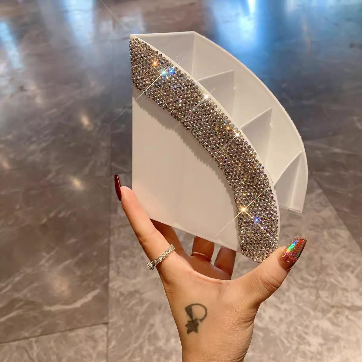 Роскошная коробка для хранения кистей для макияжа и пульта дистанционного управления с бриллиантовыми акцентами - Элегантный органайзер с разделителями для использования на рабочем столе или в офисе.