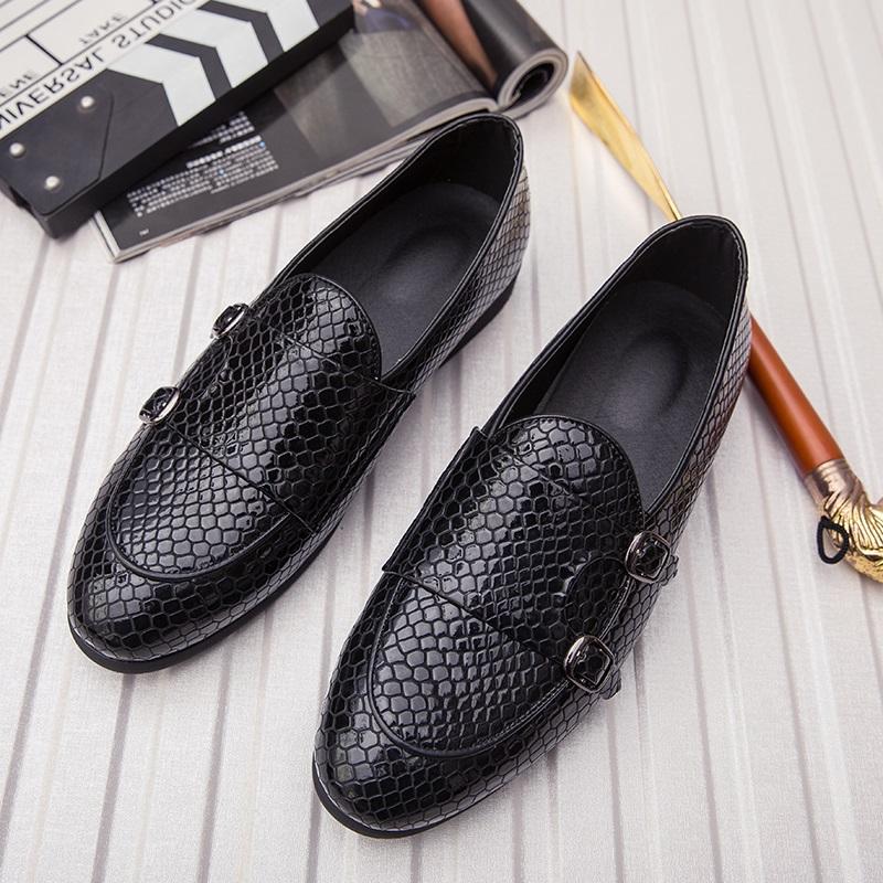 Роскошная мода Новый дизайнер Черные кожаные слипоны Мужские остроносые лоферы с ремешком-монком Свадебное платье Выпускной вечер Формальная обувь 38