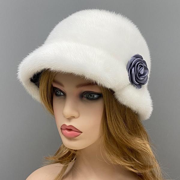 Роскошная норковая шапка Женская Зимняя Теплая из Натурального Меха Шляпа-ведро Женская Шапка Элегантная Цветочная Федора One Size белый