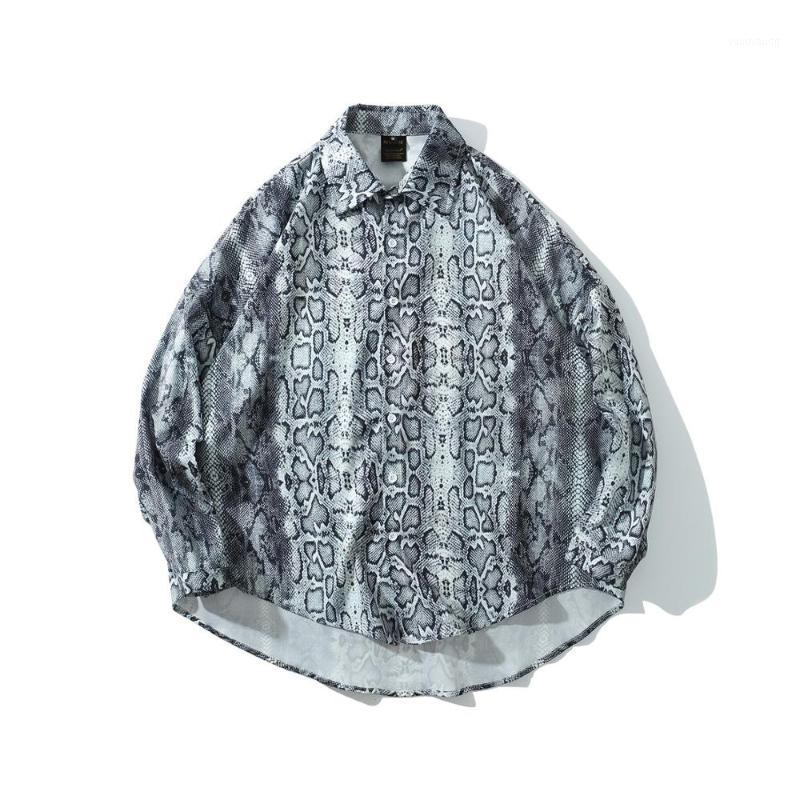 Autumn And Winter Casual Long Sleeve Shirts For Men Fashion Snake Print Shirt Personality Oversized Streetwear Blouse Men's, 01