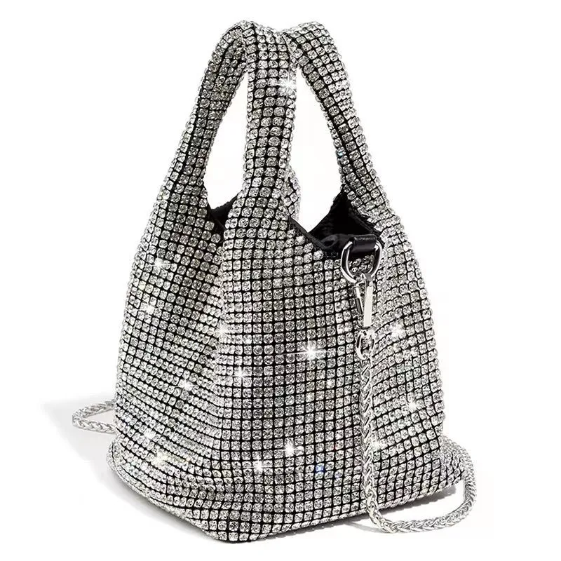 Роскошная сумка-корзина со стразами, дизайнерская Брендовая женская сумочка, блестящая стразы, сумка через плечо, вечерняя сумка-мешок, кош...