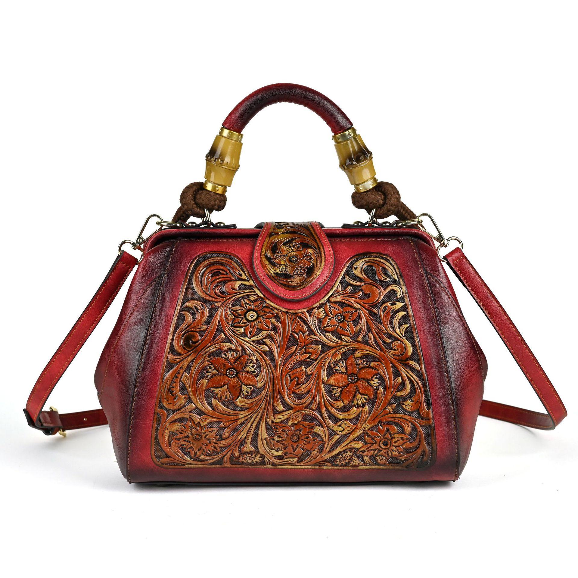 Роскошная сумка Johnature, винтажная кожаная женская сумка ручной работы с резной отделкой, универсальные женские сумки на плечо и через плечо красный