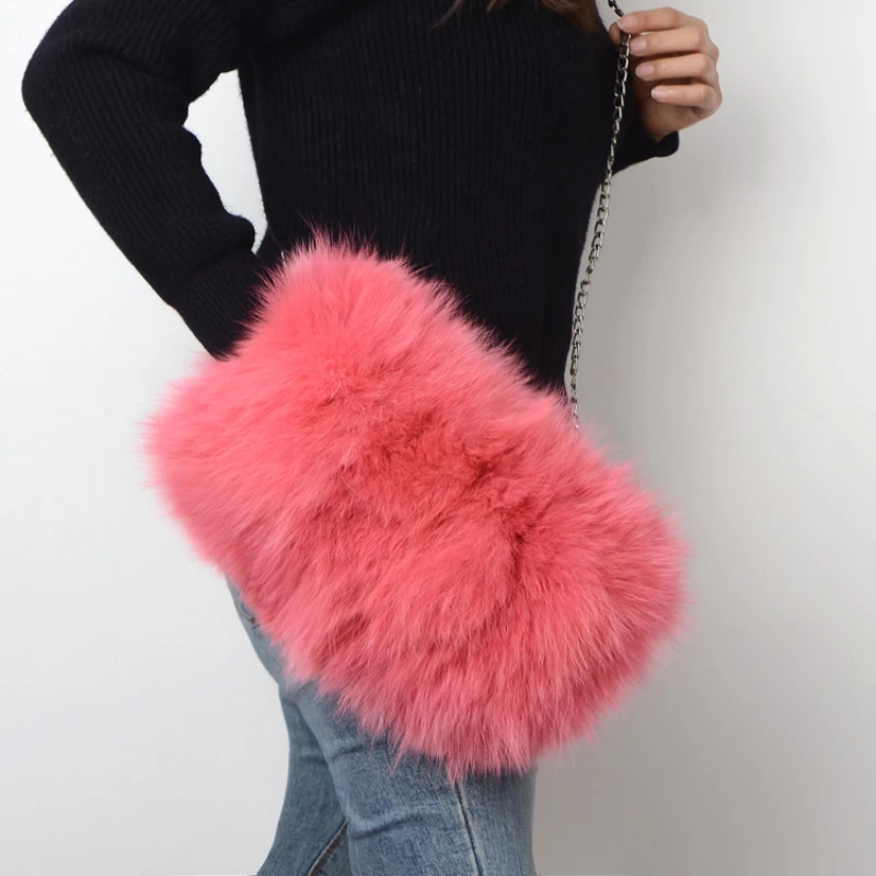 Роскошная теплая сумка из лисьего меха, женская плюшевая сумка на плечо, мягкая плюшевая женская вечерняя сумка-тоут, пушистая сумка через плечо, милый кошелек на цепочке