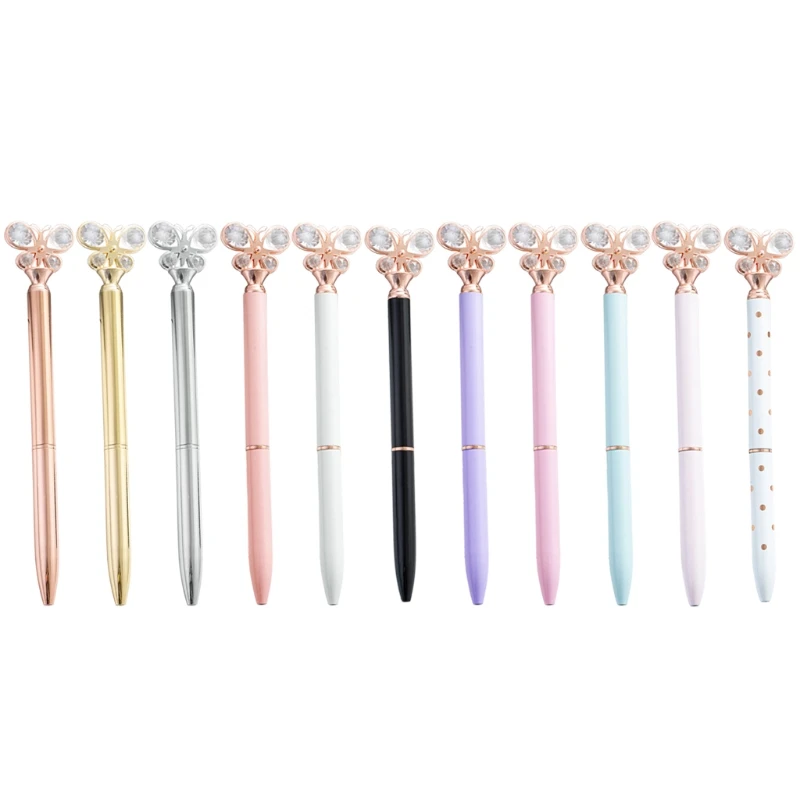 Роскошная шариковая ручка с кристаллами и бриллиантами, металлическая шариковая ручка, поворотная Шариковая ручка для работы, Прямая поста...