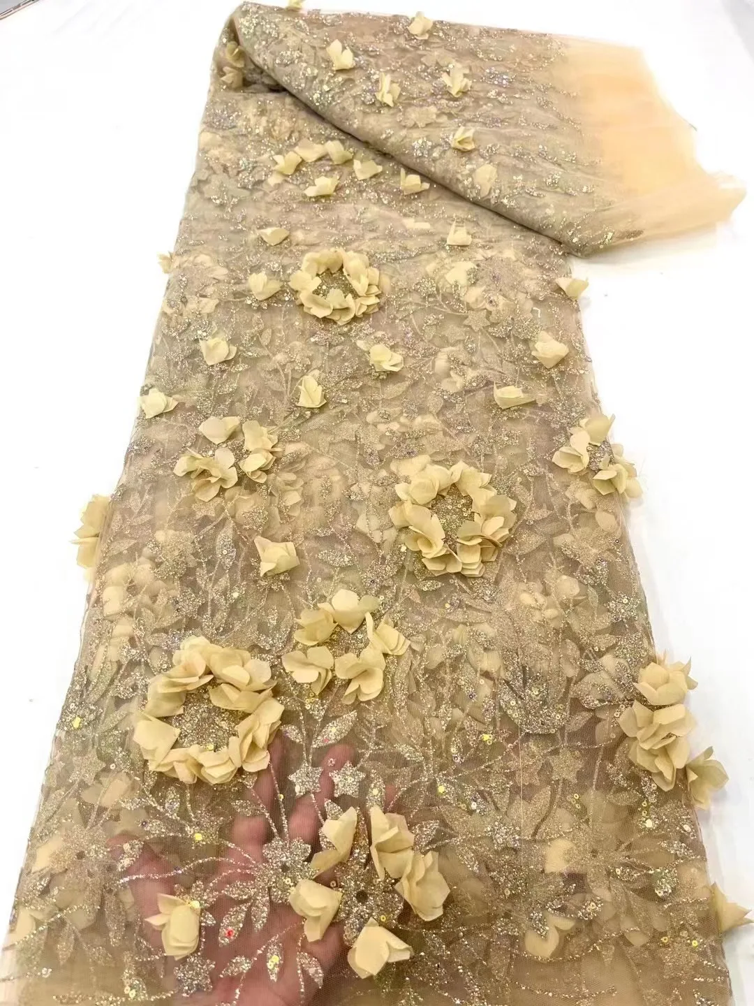 Роскошная 3D кружевная ткань 2023, новейшая Тюлевая кружевная ткань с блестками, вышитая аппликация, африканская нигерийская кружевная ткань для шитья платьев