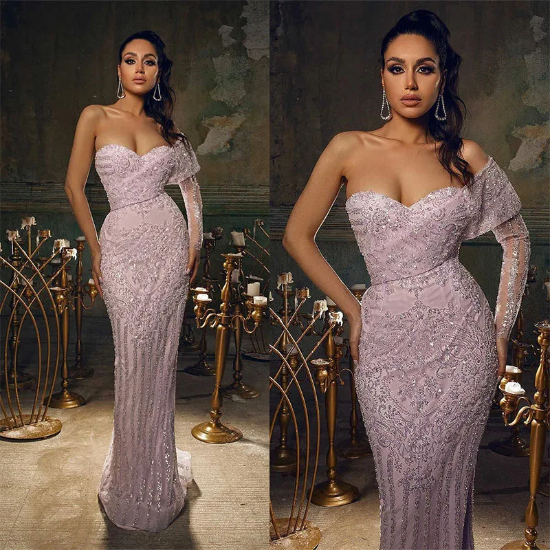 Роскошное вечернее платье русалки в форме сердца по индивидуальному заказу, платья для выпускного вечера с длинными рукавами на одно плечо, женские вечерние платья для вечеринки 2025