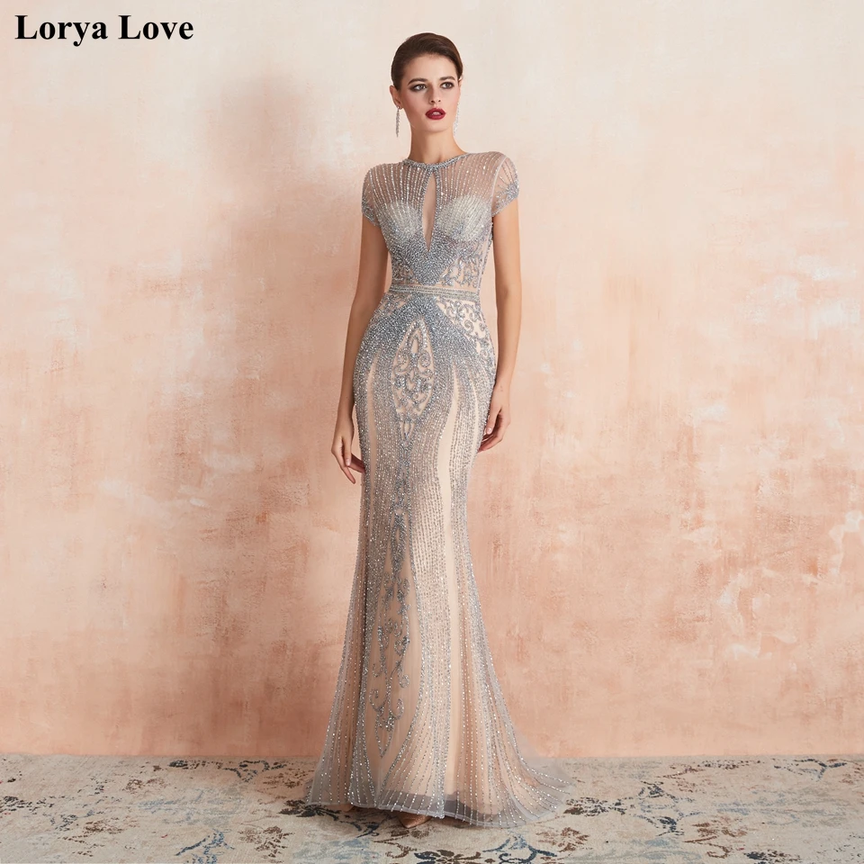 Роскошное вечернее платье цвета шампанского, серебристого цвета, с бисером, с кристаллами, 2020, женские Формальные Вечерние платья черного ц...