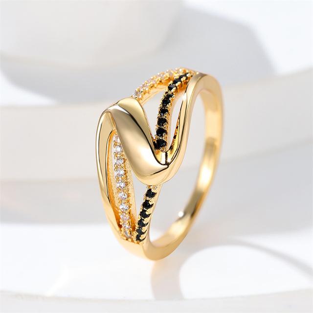 Роскошное женское белое, черное кольцо с кристаллами, очаровательное кольцо из желтого золота, обручальное кольцо с камнем для женщин, обручальное кольцо с цирконом для невесты 6 чёрный