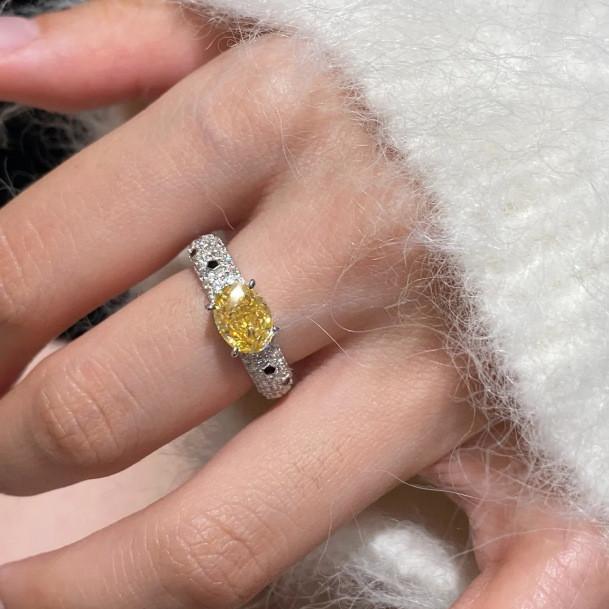 Роскошное открытое регулируемое кольцо с желтым бриллиантом для женщин, модный шикарный стиль, идеально для 2024 года