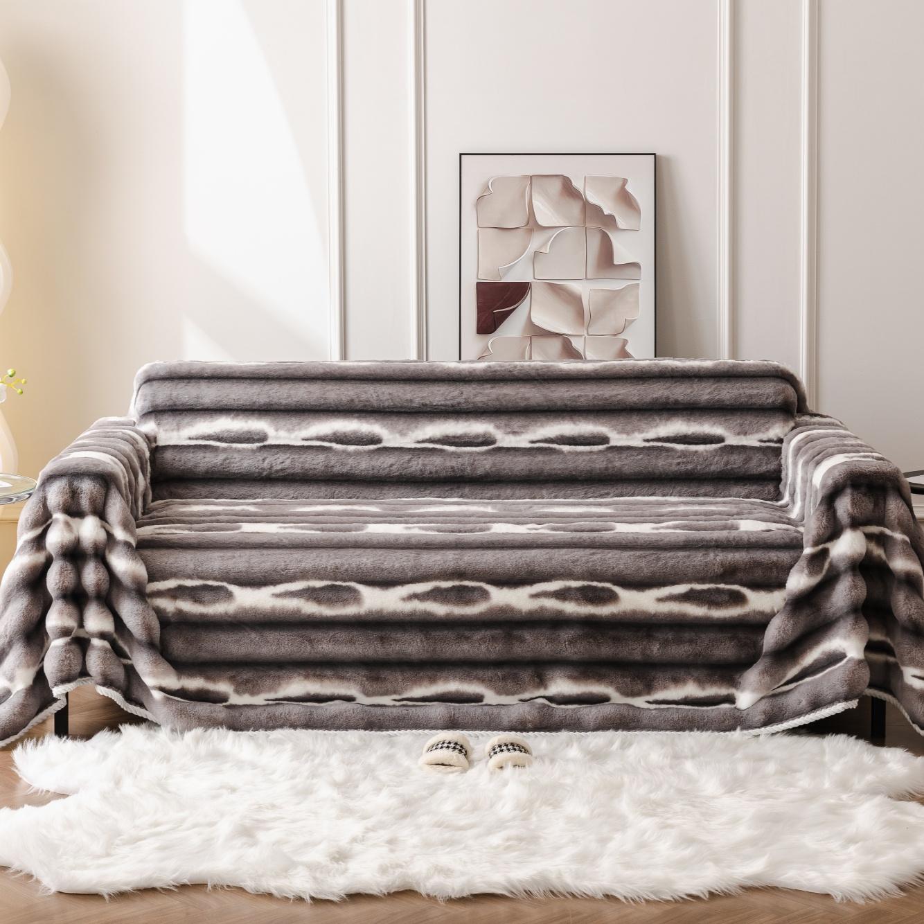 Роскошное полотенце для дивана из искусственного меха кролика с принтом - утолщенное, простое в уходе защитное покрытие для мебели в спальне, офисе, гостиной 180x260cm