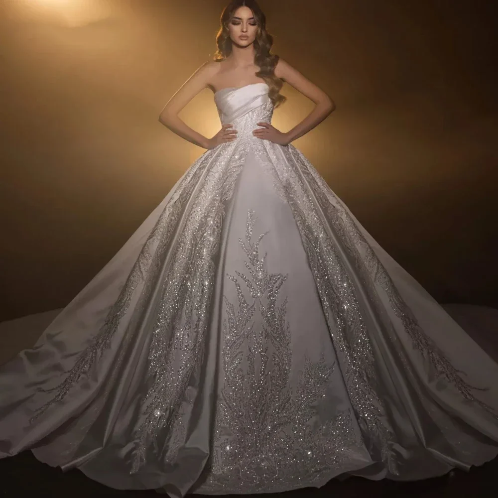 Роскошное свадебное платье принцессы трапециевидной формы без бретелек с открытыми плечами, сверкающая съемная длинная юбка, винтажное свадебное платье на заказ