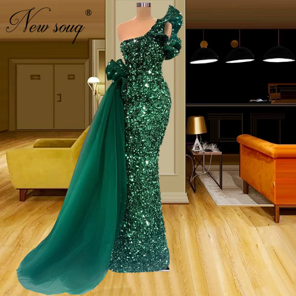 Роскошные Длинные Зеленые вечерние платья, арабское вечернее платье-Русалка Дубая, женское платье знаменитости с бисером для выпускного вечера