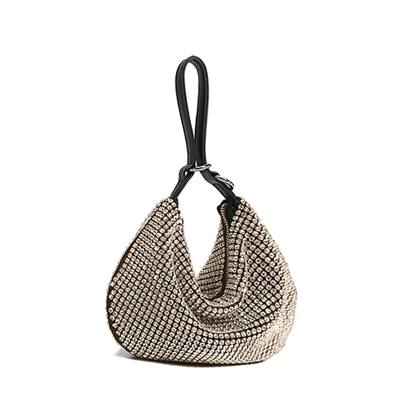 Роскошные вечерние сумки со стразами в форме полумесяца, дизайнерские женские сумки с бриллиантами, блестящие сетчатые сумки на ремне с кристаллами, маленькие вечерние кошельки фиолетовый