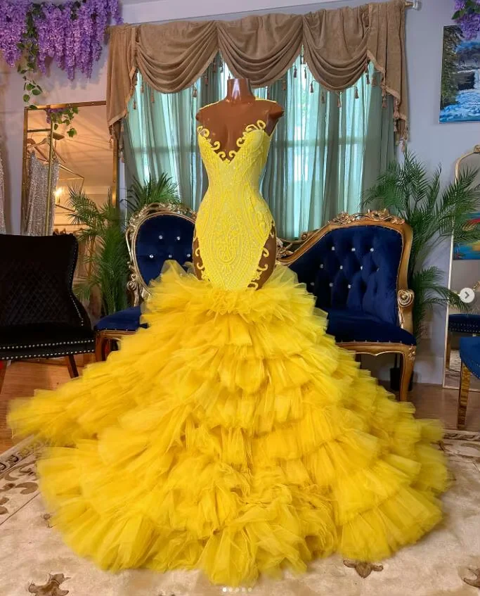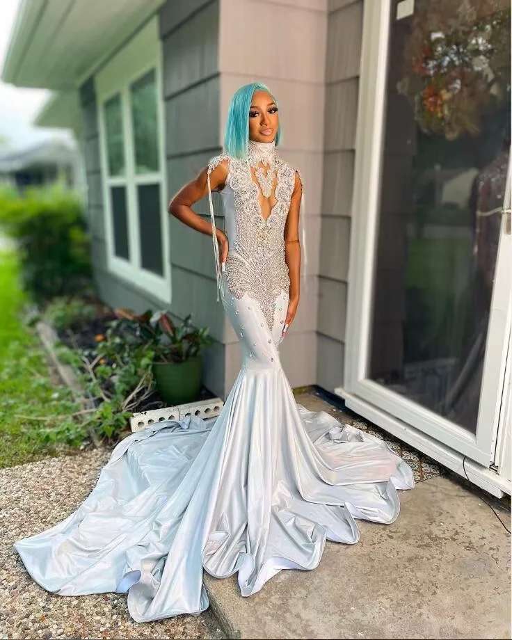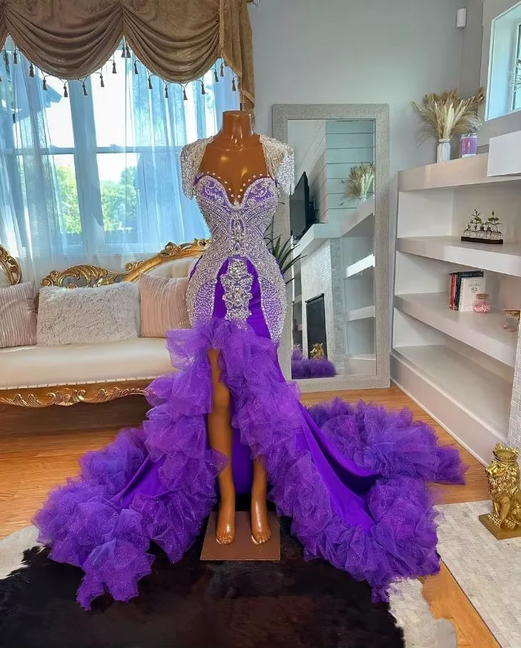 Роскошные длинные платья русалки для выпускного вечера с оборками, вечернее платье королевы на заказ для черных девушек с блестящими бриллиантами, вечернее платье на день рождения