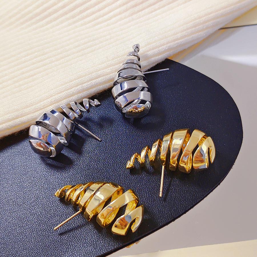 Роскошные европейские и американские модные золотые глянцевые серьги с выдолбленными спиральными серьгами-каплями воды