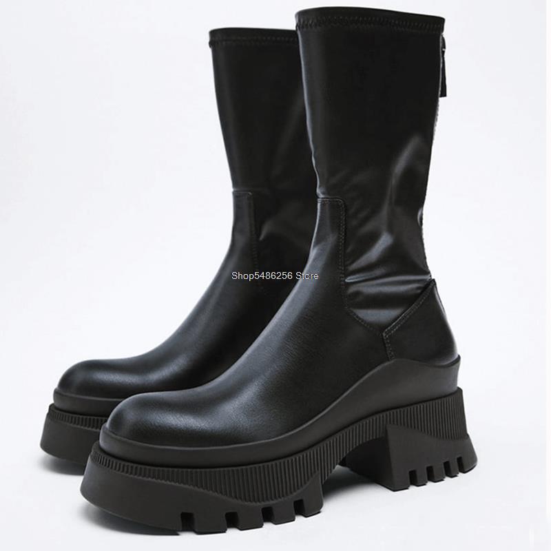 Роскошные женские сапоги на высоком каблуке, черные женские ботильоны, осенне-зимняя обувь, модные ботинки «Челси» на толстом каблуке, женские сапоги на платформе 35 чёрный