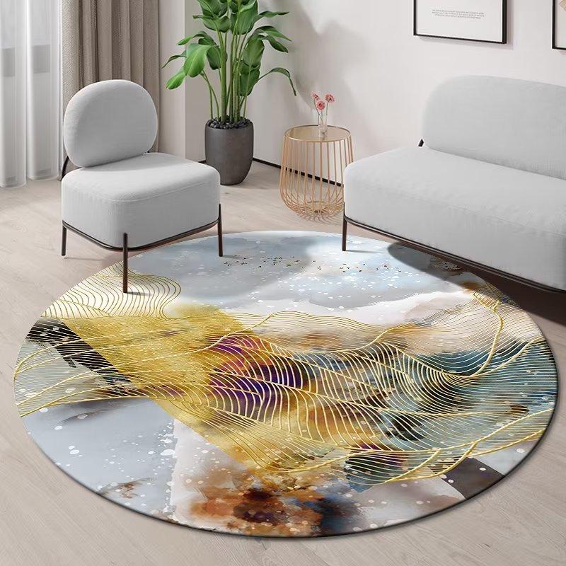 Роскошные золотые круглые ковры для гостиной, диванов, украшения, большие ковры, декор спальни, противоскользящие коврики, коврики для стульев, моющиеся 60cm 23.62 in