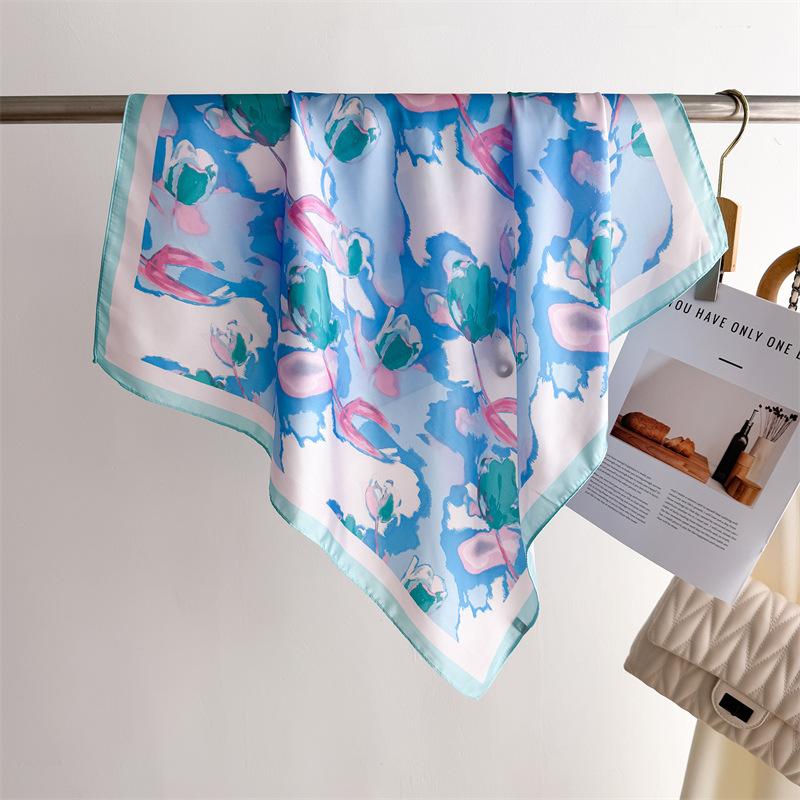 Роскошные квадратные платки с принтом Женский шелковый платок Весенне-летний цветочный бандана Маленькие шейные платки Повязки для волос Сумки Фуляр Шаль 70x70cm