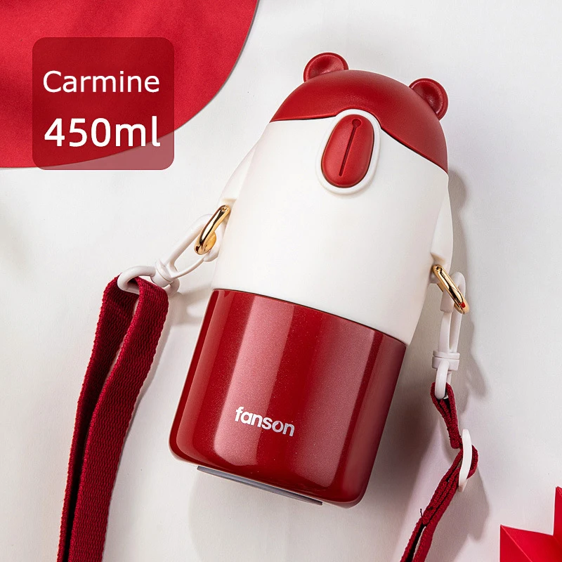 Children's Thermos Cup Stainless Steel Vacuum Flask Eco-Friendly Portable Cartoon Little Bear Silicone Straw Cup Water Bottles