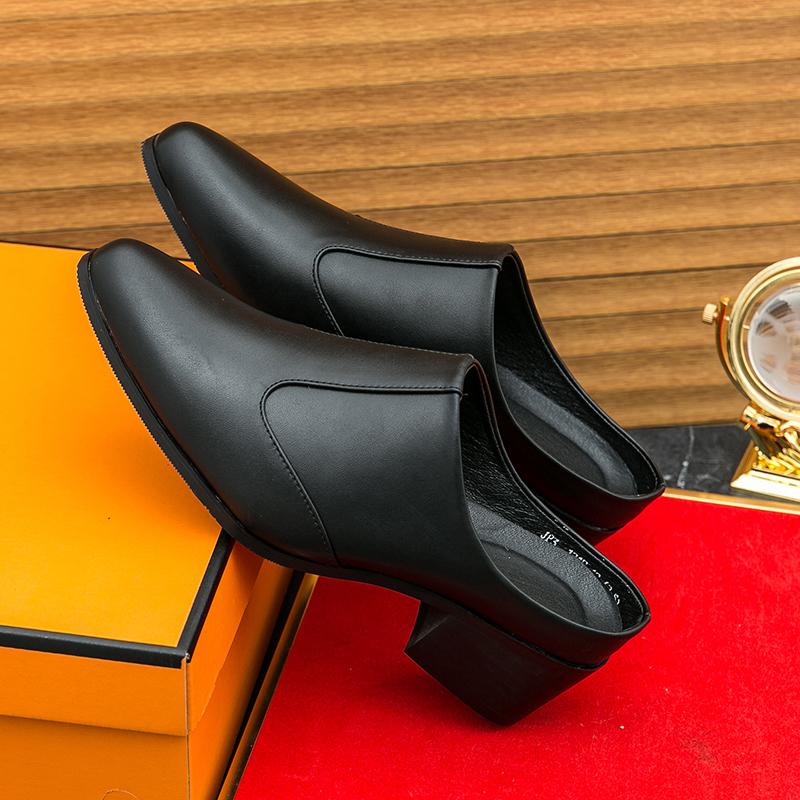 Роскошные мужские кожаные тапочки на каблуке из натуральной кожи высотой 5 см, мужская деловая обувь, удобные черные белые сандалии для вечеринки 38 чёрный