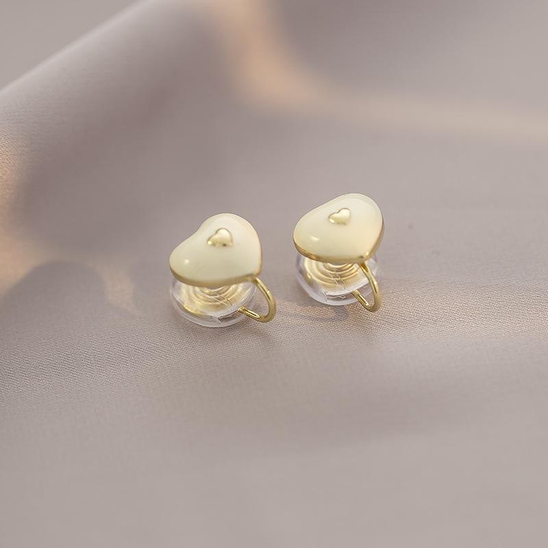 Роскошные нежные ежедневные эмалированные серьги в форме сердца с москитной сеткой, зажим для ушей без пирсинга, женский