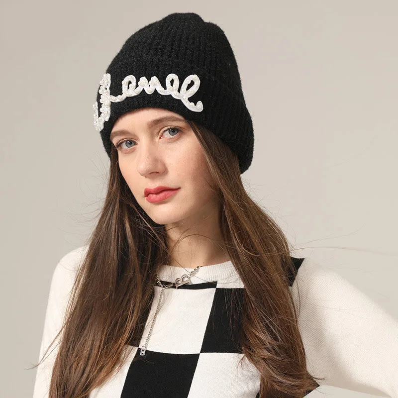 Роскошные облегающие шапки, женские зимние теплые вязаные шапки, Женская однотонная эластичная шапка большого размера с надписью, модная ш...