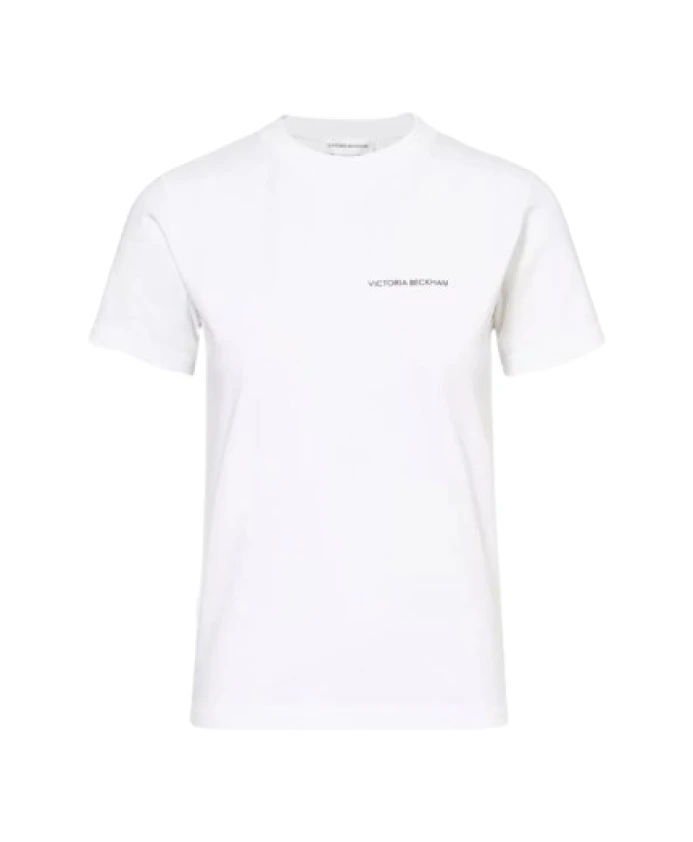Футболка с логотипом и круглым вырезом приталенного кроя Victoria Beckham, белый