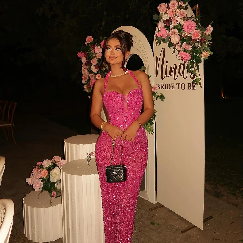 Роскошные платья для выпускного вечера Вечернее платье русалки без рукавов с лямкой на шее Гала-платье День рождения Розово-красное свадебное платье для гостей по индивидуальному заказу