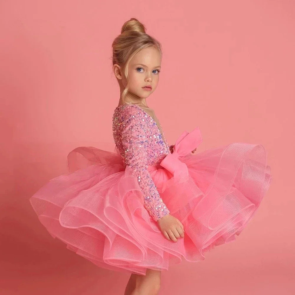Роскошные платья с блестками для девочек с цветами для первого причастия, дня рождения, свадьбы, вечеринки, наряды принцессы на заказ