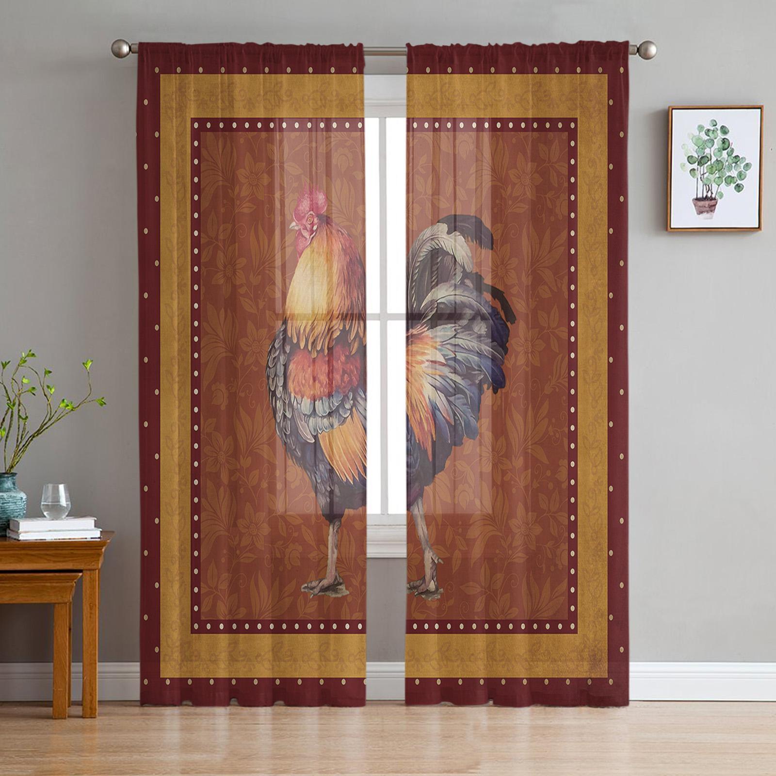 Роскошные тюлевые шторы с рисунком петуха в виде фермы для гостиной, кухни, шифоновые шторы, молодежная прозрачная напольная занавеска для спальни 135W x 274H(cm) x2