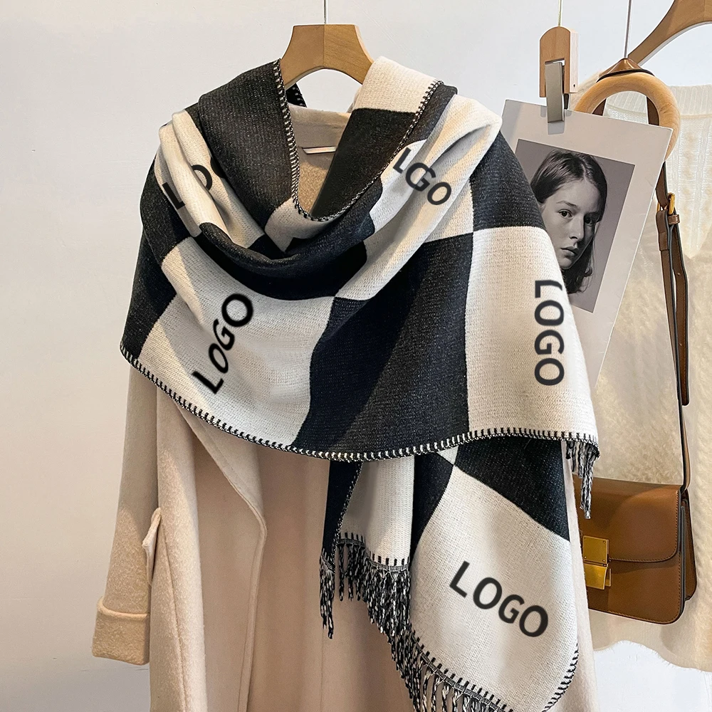 Роскошные шарфы для женщин, классическое клетчатое мягкое Клетчатое одеяло, шарф, зимняя шаль с кисточками, шарфы, шаль и палантины для вече...