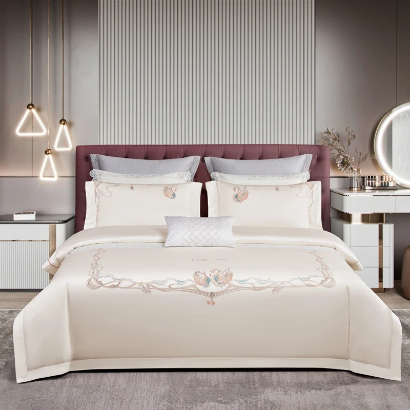 Роскошный бежевый однотонный Комплект постельного белья из хлопка с вышивкой пододеяльник постельное белье простыня наволочки, Текстиль д...