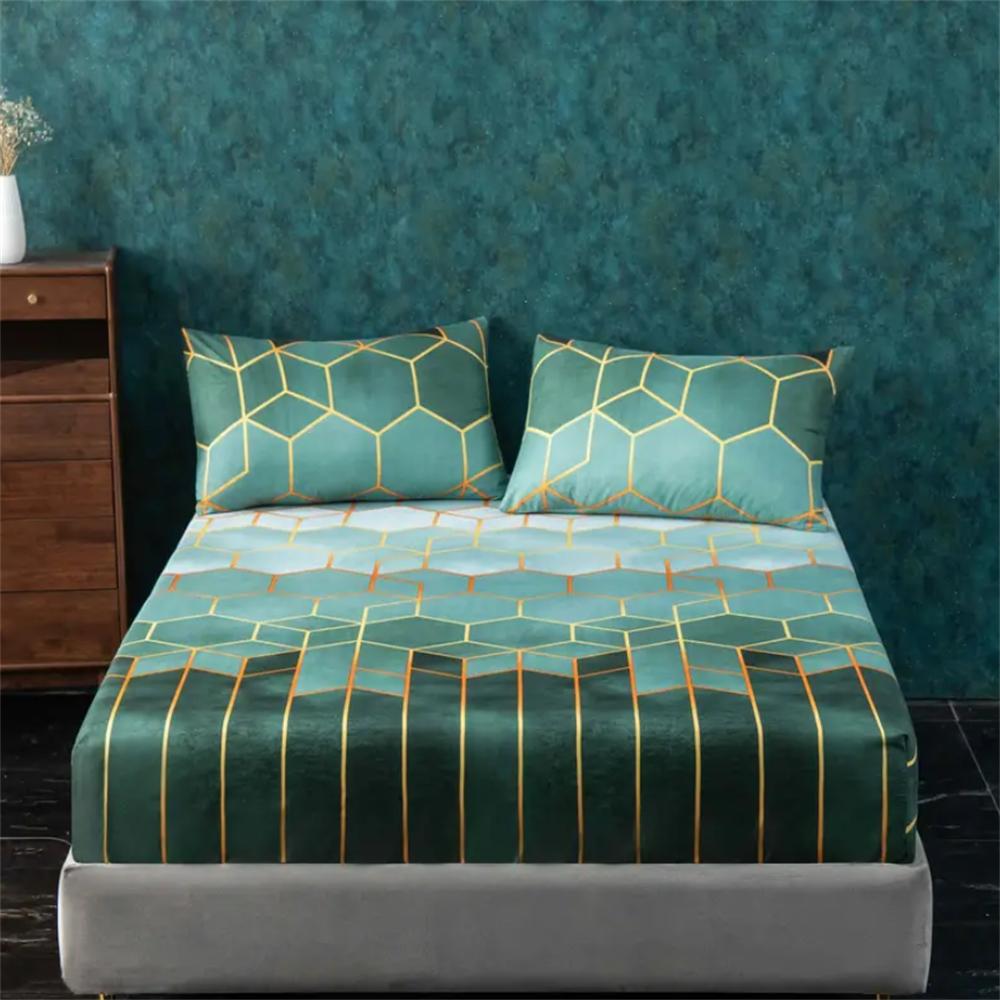 Роскошный геометрический комплект простыней на резинке из 3 предметов - Мягкое, удобное, дышащее постельное белье с защитой матраса - Идеально для спальни 90x190x25cm 2pcs