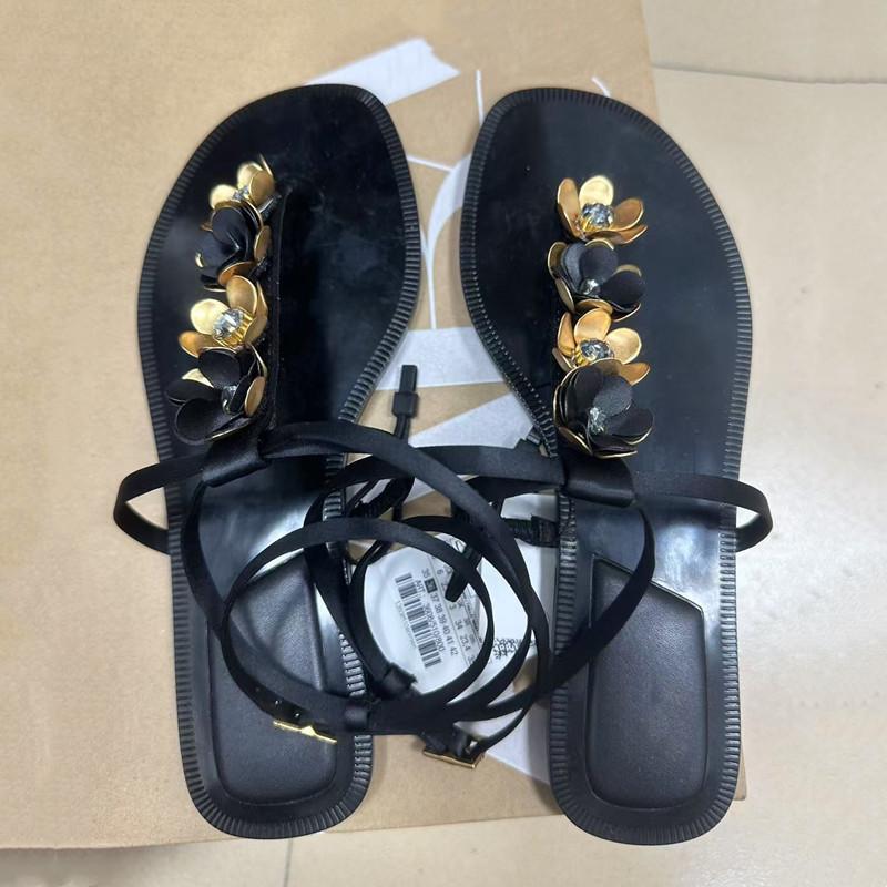 Роскошный декор из кристаллов в виде цветов, женские балетки-сандалии, сексуальный ремешок на щиколотке, летние пляжные шлепанцы, модная уличная одежда, современные сандалии, обувь 42 чёрный
