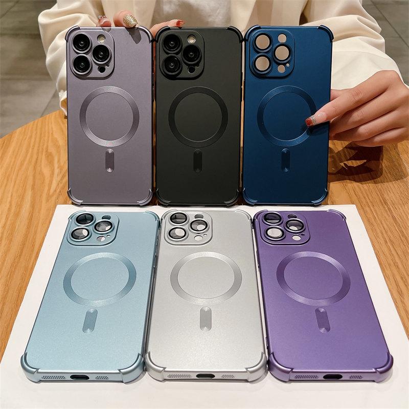 Роскошный магнитный чехол с четырьмя углами с металлической краской и защитой от падения с беспроводной зарядкой для iPhone 15, 14, 13, 12 Pro Max, универсальные чехлы против падения